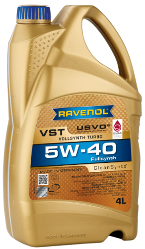 RAVENOL VollSynth Turbo VST SAE 5W-40 – полностью синтетическое легкотекучее моторное масло, изготовленное с применением технологии CleanSynto на основе полиальфаолефинов (ПАО) для легковых бензиновых и дизельных моторов с и без турбонадува и прямым впрыском топлива. Удлиненные интервалы замены согласно требованиям автопроизводителей. Одни из лучших низкотемпературных свойств в свём классе.